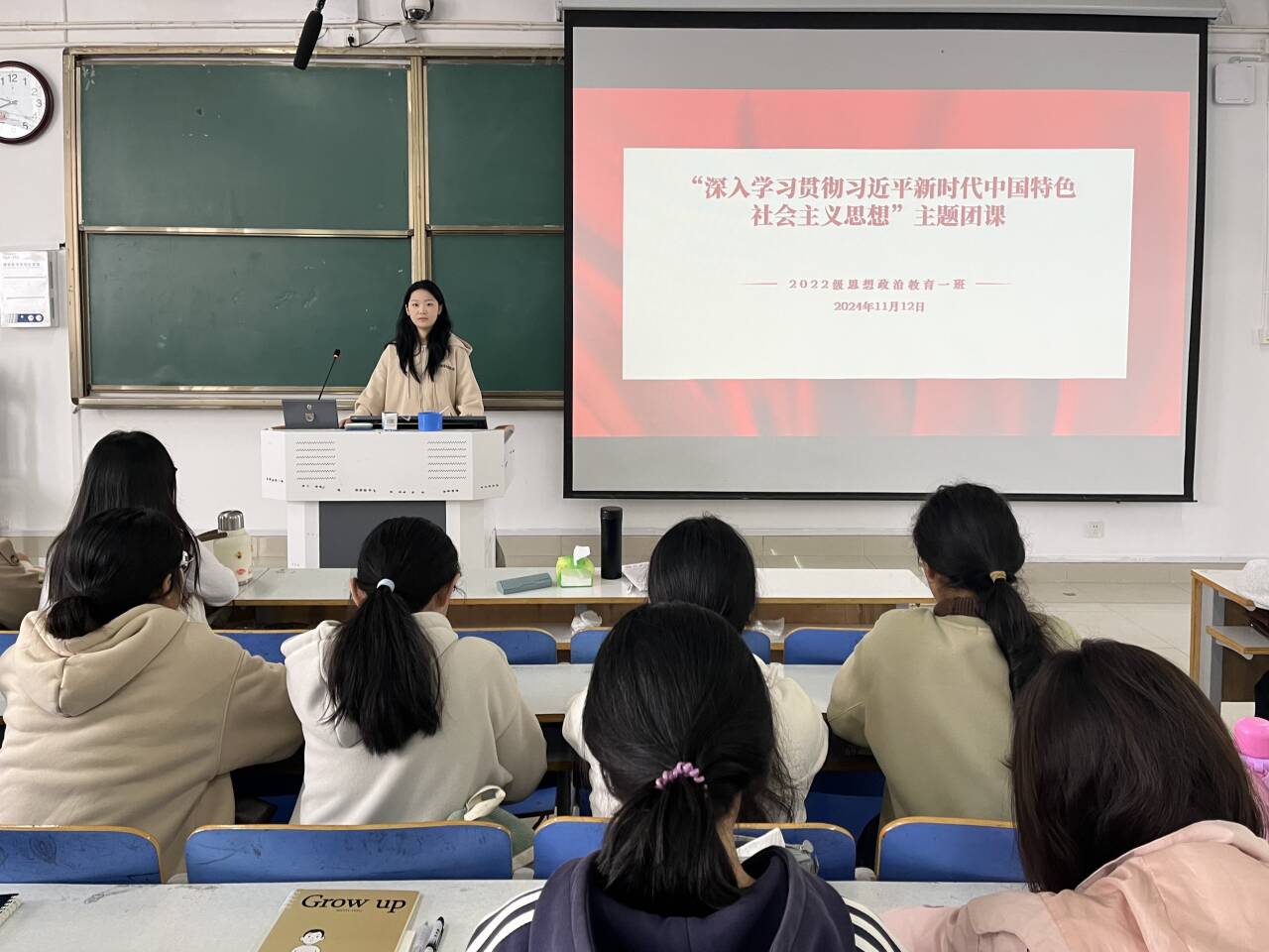 11月12日上午,德赢AC米兰官网2022级思想政治教育一班在社科楼514教室召开“深入学习贯彻习近平新时代中国特色社会主义思想”主题团课,德赢官网2022级思想政治教育一班全体同学共同参与本次团课,团课由团支书李佳茹主持。