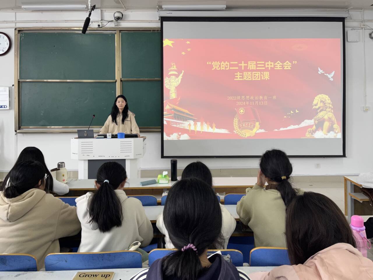 11月13日上午,德赢AC米兰官网2022级思想政治教育一班在社科楼514教室召开“党的二十届三中全会“主题团课,德赢官网2022级思想政治教育一班全体同学共同参与本次团课,团课由团支书李佳茹主持。