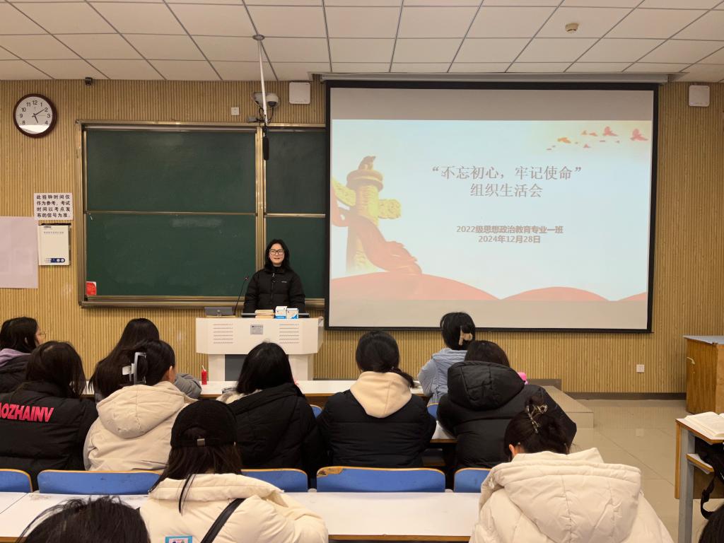 12月28日下午,德赢AC米兰官网2022级思想政治教育一班在社科楼515教室召开“不忘初心,牢记使命”组织生活会。德赢官网2022级思想政治教育一班全体同学共同参与本次会议,会议由团支书李佳茹主持。
