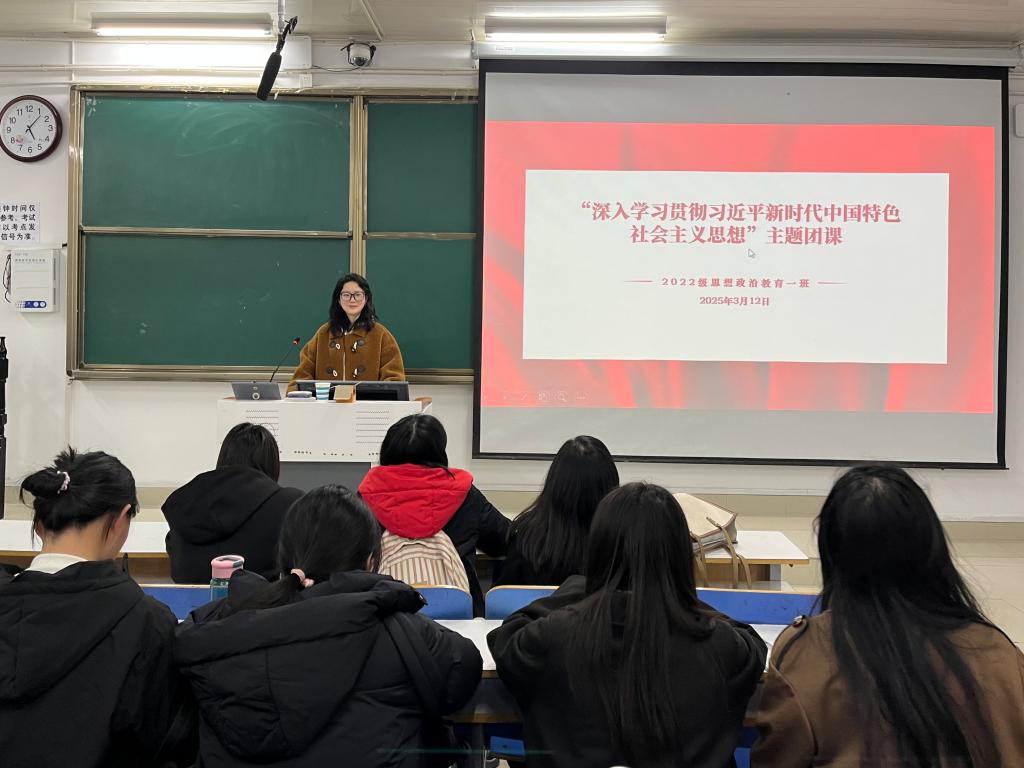 为加强对共青团员的政治锻造,进一步学习领会习近平新时代中国特色社会主义思想,3月12日下午,德赢AC米兰官网2022级思想政治教育一班在社科楼514教室开展“深入学习贯彻习近平新时代中国特色社会主义思想”团课,德赢官网2022级思想政治教育一班全体同学共同参与本次团课,团课由团支书李佳茹主持。