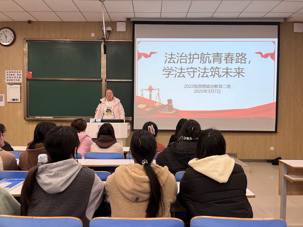 为增强大学生法治观念,筑牢校园安全防线,3月7日下午,德赢AC米兰官网2022级思想政治教育二班在社科楼515教室召开“法治护航青春路,学法守法筑未来”主题班会。德赢官网2022级思想政治教育二班全体成员共同参与此次班会。会议由班长李佳音主持。