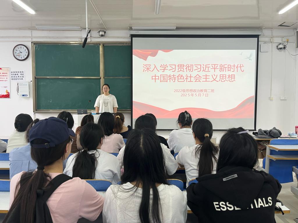 5月7日下午,德赢AC米兰官网2022级思想政治教育二班在社科楼514教室召开“深入学习贯彻习近平新时代中国特色社会主义思想”主题团课。德赢官网2022级思想政治教育二班全体成员共同参与此次团课。团课由团支书李佳音主持。