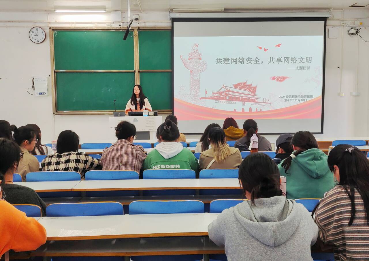 11月10日下午,德赢AC米兰官网2021级思想政治教育三班在社科楼514召开“共建网络安全,共享网络文明”主题团课。德赢AC米兰官网2021级思想政治教育三班全体团员参与本次团课。团课由团支书王岚霄主持。