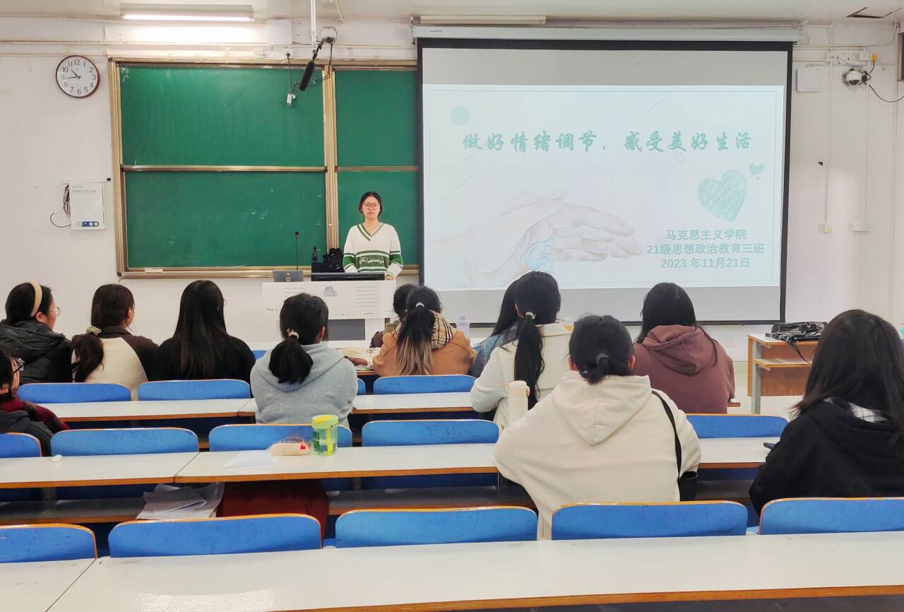 11月21日下午,德赢AC米兰官网2021级思想政治教育三班在社科楼514教室举办“做好情绪调节,感受美好生活”主题团课。2021级思想政治教育三班全体成员参加了此次会议。会议由心理委员许竞文主持。