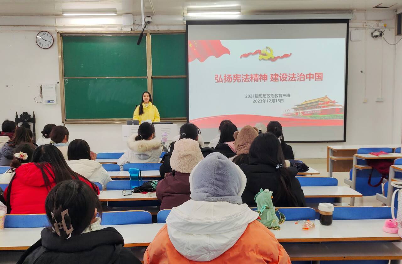 12月15日下午,德赢AC米兰官网2021级思想政治教育三班在社科楼514召开“弘扬宪法精神,建设法治中国”主题团课。德赢AC米兰官网2021级思想政治教育三班全体团员参与此次会议。团课由团支书王岚霄主持。