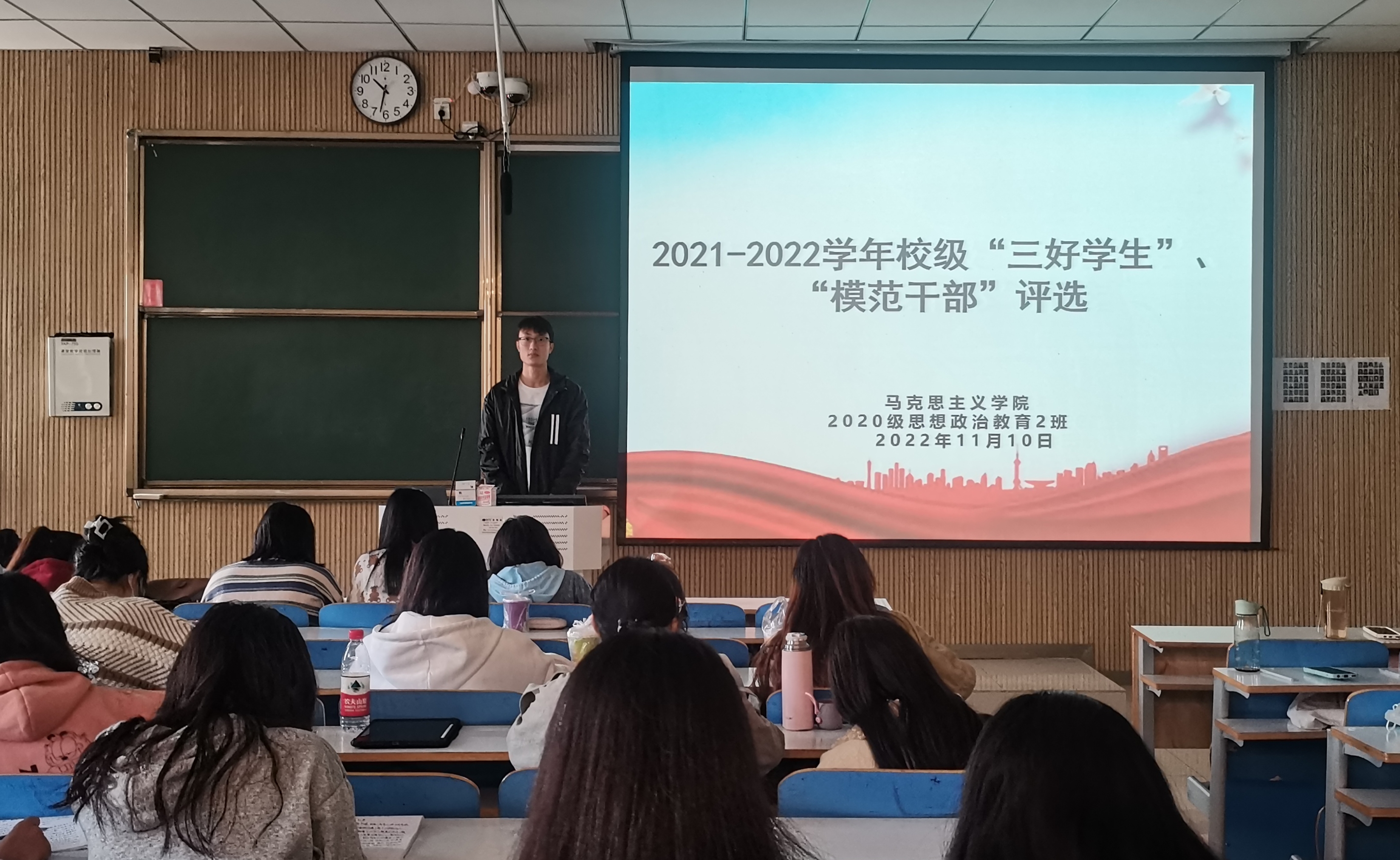11月10日上午,德赢AC米兰官网2020级思想政治教育二班、定向二班在社科楼515教室召开2021-2022学年校级“三好学生”“模范干部”评选会。二班、定向二班全体同学共同参与本次会议。会议由团支书陈宇航主持。