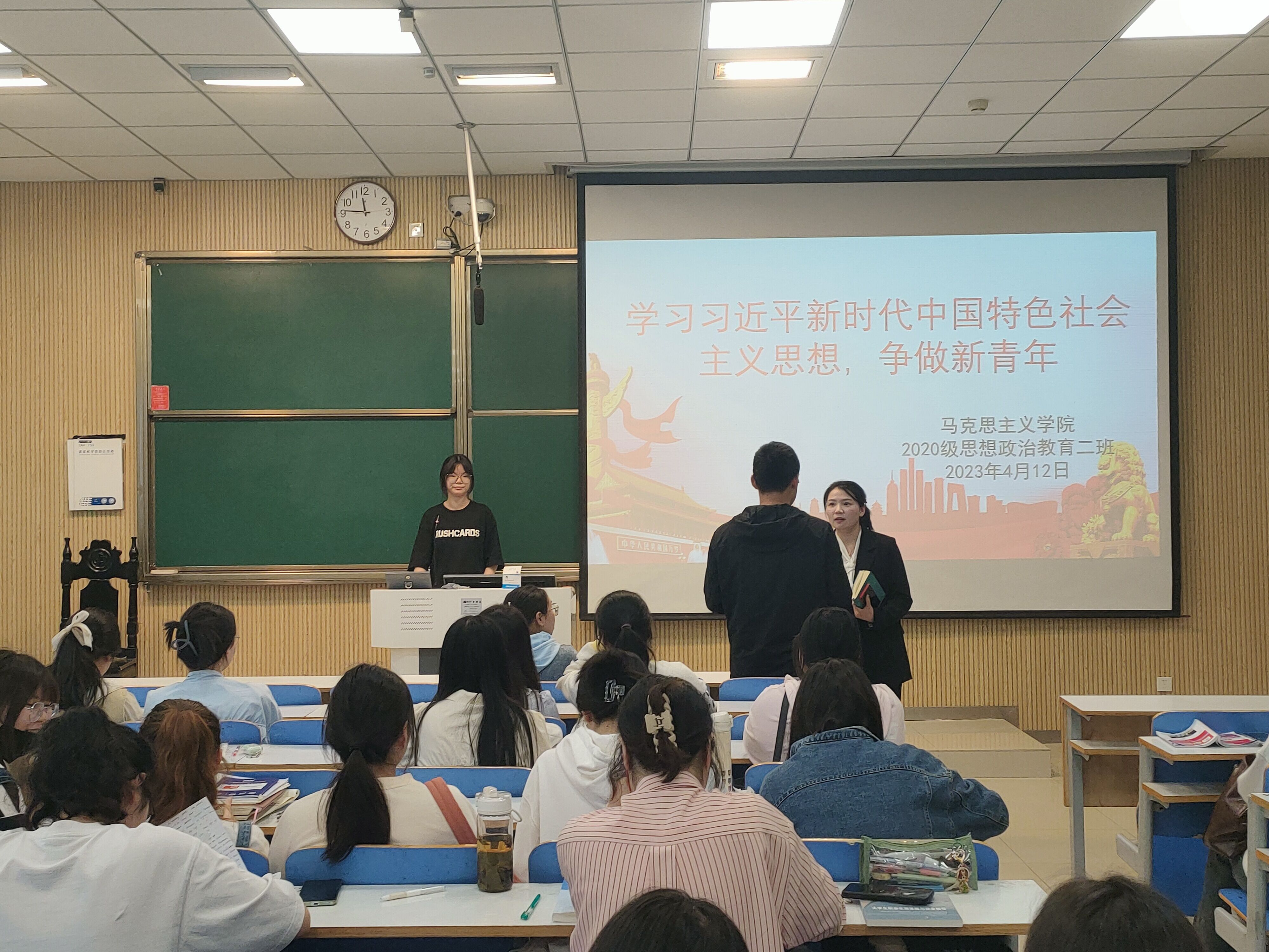 感悟思想伟力,凝聚奋进力量。为积极响应我校关于开展学习宣传贯彻习近平新时代中国特色社会主义思想主题教育的通知要求,推动我班理论学习进一步走深走实,4月12日上午,德赢AC米兰官网2020级思想政治教育二班、定向二班团支部在社科楼515教室开展“学习习近平新时代中国特色社会主义思想,争做新时代青年”主题团课。二班、定向二班全体团员共同参与此次团课。团课由团支书李晨曦讲授。
