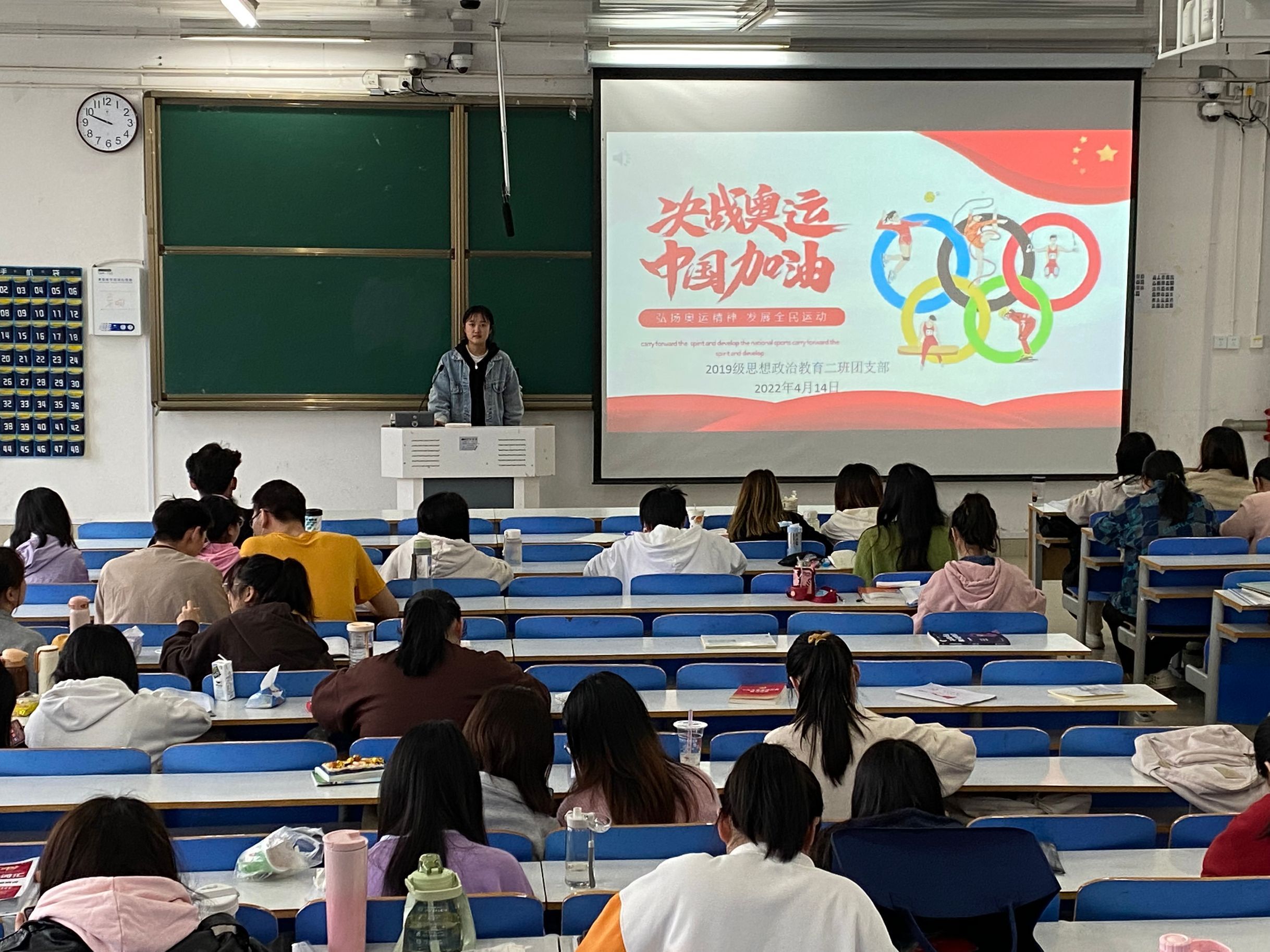为弘扬和传承奥运精神,提高同学们对体育锻炼的重视,展现德赢官网青年学子的蓬勃朝气,4月14日上午,德赢官网2019级思想政治教育二班于516教室召开“决战奥运,中国加油”主题团课。会议由孙雅娴主持。