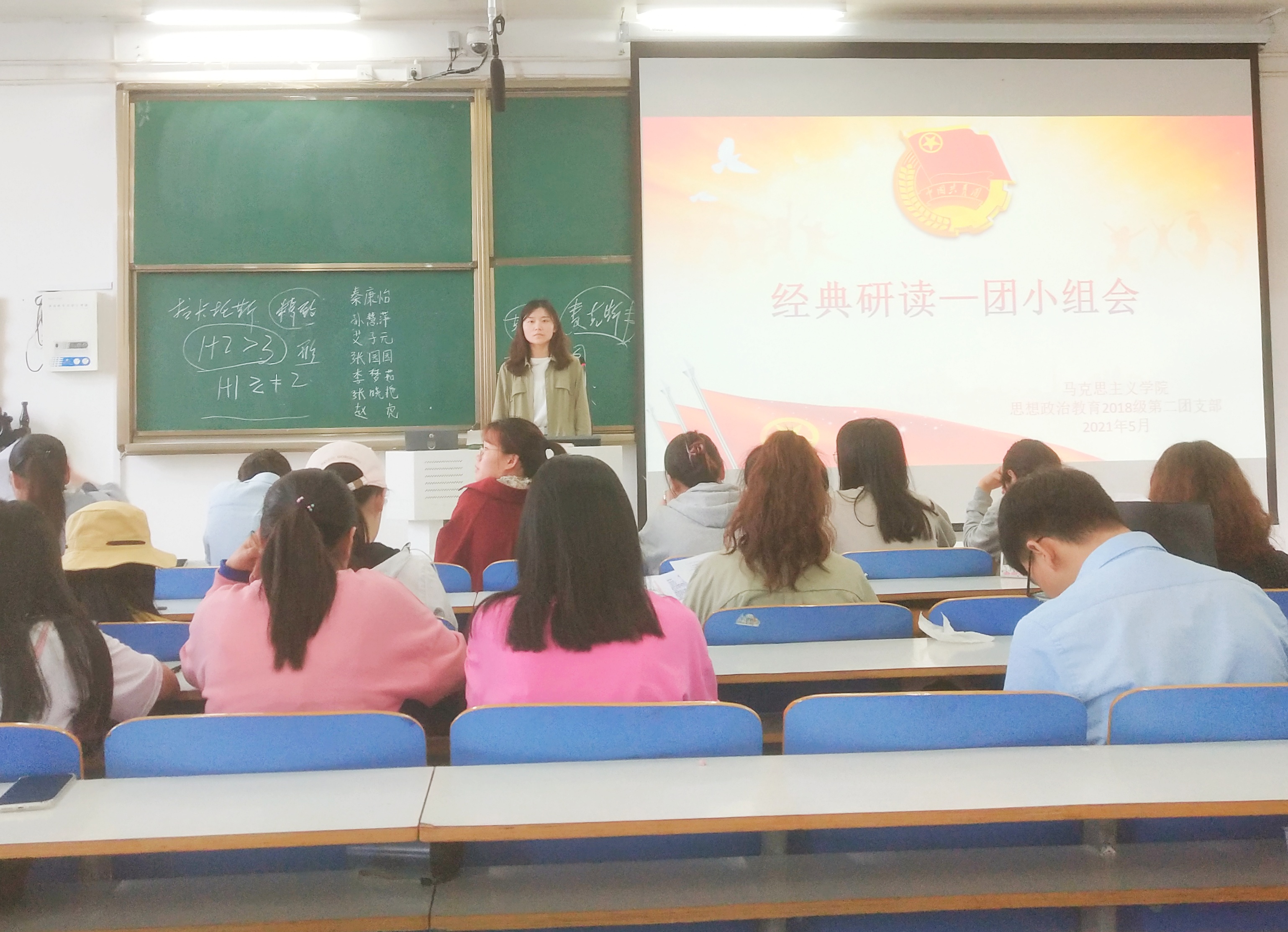 5月11日上午,德赢官网2018级思想政治教育第二团支部第一团小组在社科楼514教室顺利开展主题为“经典研读”团小组会。会议由团小组组长刘苏醒主持。