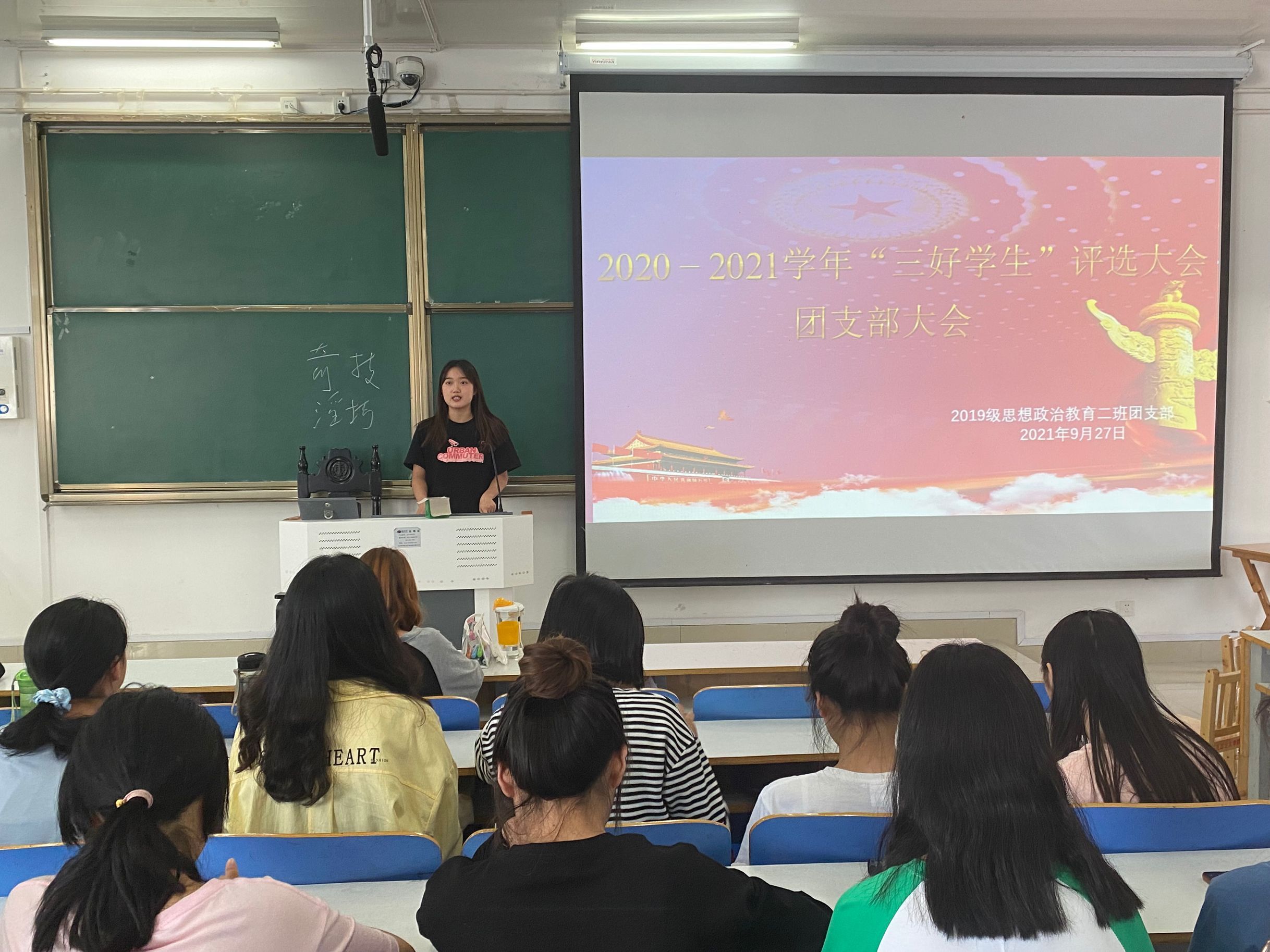 9月27日下午,德赢AC米兰官网2019级思想政治教育二班团支部2020-2021学年“三好学生”、“优秀班干部”评选活动于社科院514教室顺利开展。2019级思想政治教育二班全体成员共同参与本次会议。本次会议由团支书孙雅娴主持。