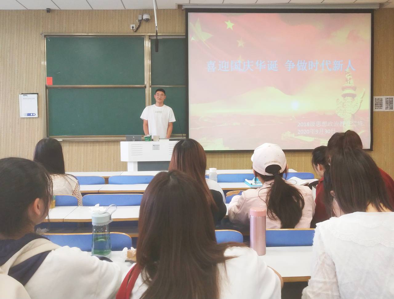 为纪念祖国七十一年华诞,激发同学们的爱国奉献精神,9月29日——10月8日,德赢官网2018级思想政治教育二班开展了“弘扬核心价值观,展现青年担当”建国七十一周年主题团日活动。德赢官网2018级思想政治教育二班全体成员共同参加了本次活动。活动由班长杨康、团支书黄子晋主持。
