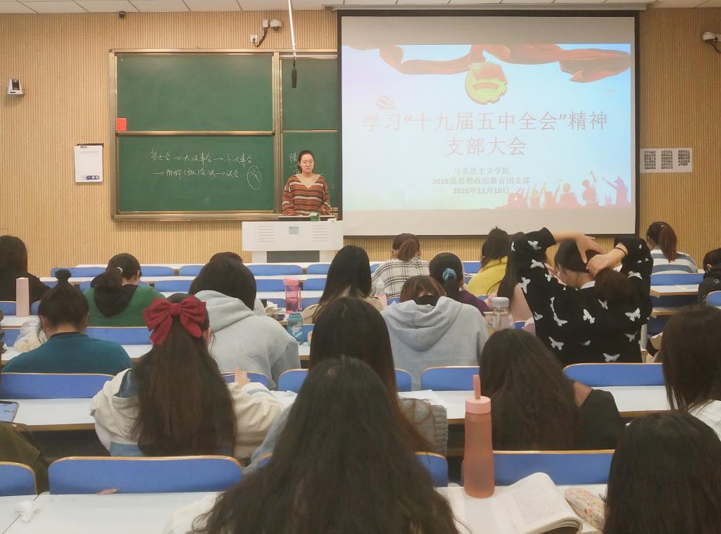 11月10日上午,德赢AC米兰官网2018级思想政治教育团支部在社科楼515教室顺利召开主题为“学习十九届五中全会精神”支部大会。会议由2018级思想政治教育第二团支部书记黄子晋主持。