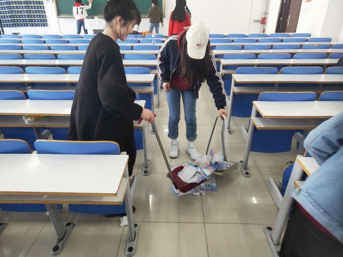 中午十二时,思政二班全体同学在社科楼五楼集合,由组织委员刘冰进行了分工后,每位同学按照所分配的教室,立即进行打扫整理。同学们在打扫过程中认真细致,不放过任何角落,不放过一根头发,践行雷锋同志不怕吃苦、做事认真的品质。打扫结束后,全体同学聚集一起拍照留念,记录下这一次辛苦而有意义的活动。