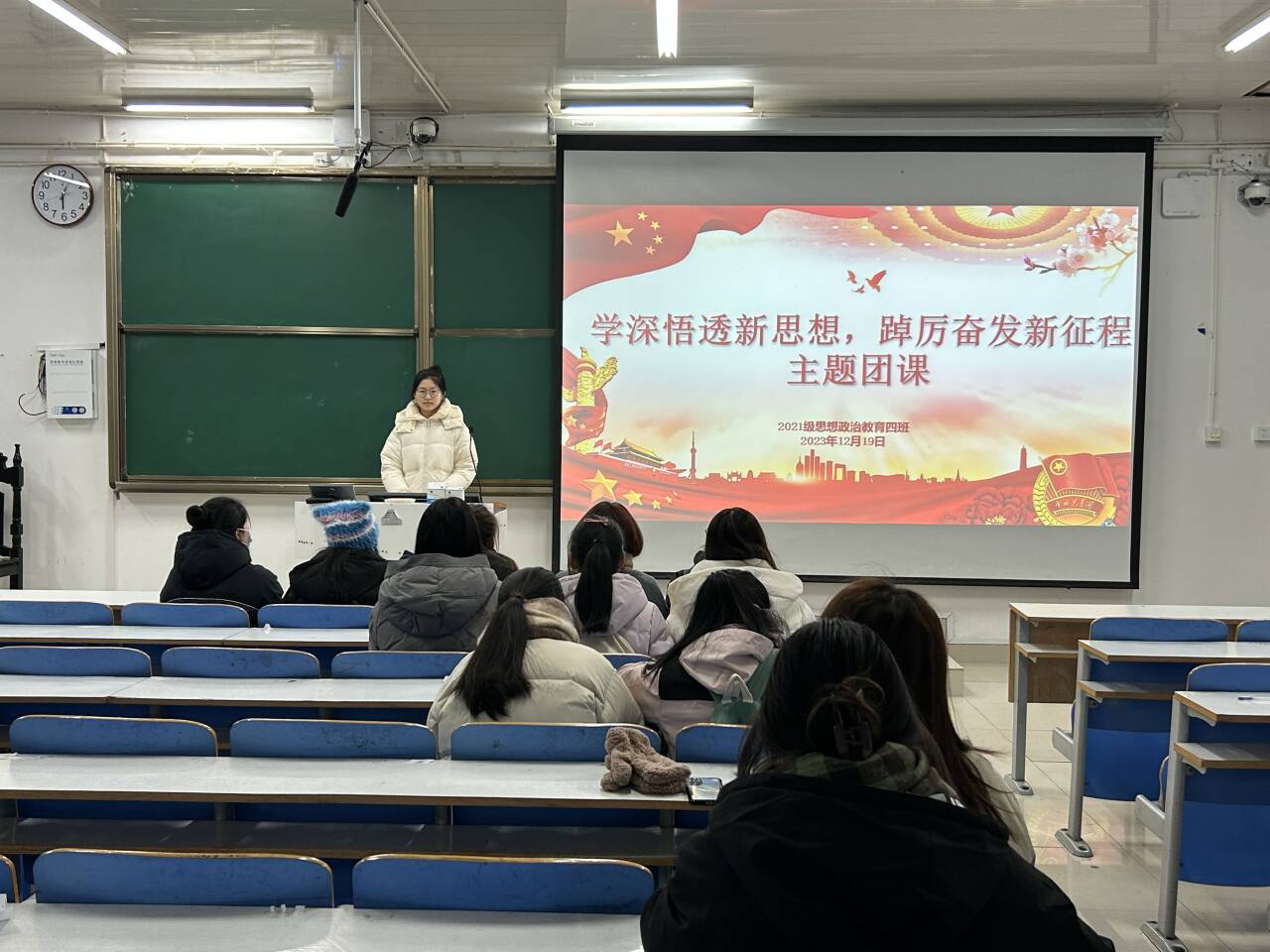 12月19日上午,德赢AC米兰官网2021级思想政治教育四班在社科楼514教室开展“学深悟透新思想,踔厉奋发新征程”主题团课。2021级思想政治教育四班全体学生共同参加本次团课。团课由团支书刘珂含主持。