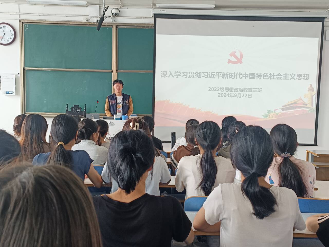 9月22日上午,德赢AC米兰官网2022级思想政治教育三班在社科楼514教室召开深入学习贯彻习近平新时代中国特色社会主义思想教育主题团课。德赢官网2022级思想政治教育三班全体成员共同参加此次团课。团课由团支书余浩洋主持。