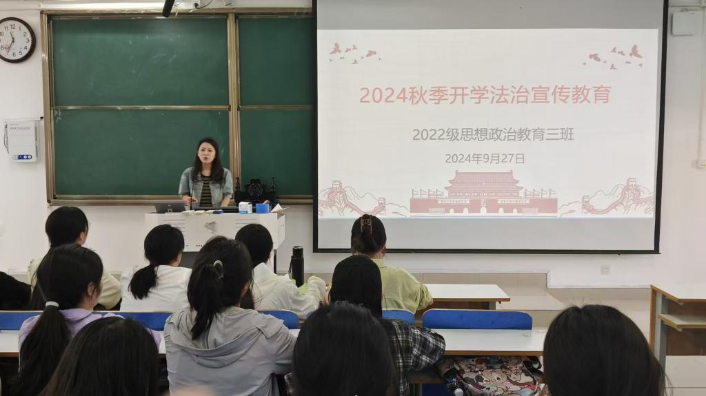 为提高同学们的法治意识,提升法治素养,增强法治宣传的教育作用,9月27日上午,德赢AC米兰官网2022级思想政治教育三班在社科楼514教室召开法治教育宣传主题班会,德赢官网2022级思想政治教育三班班主任任婷与全体成员共同参与此次班会。班会由任婷主持。