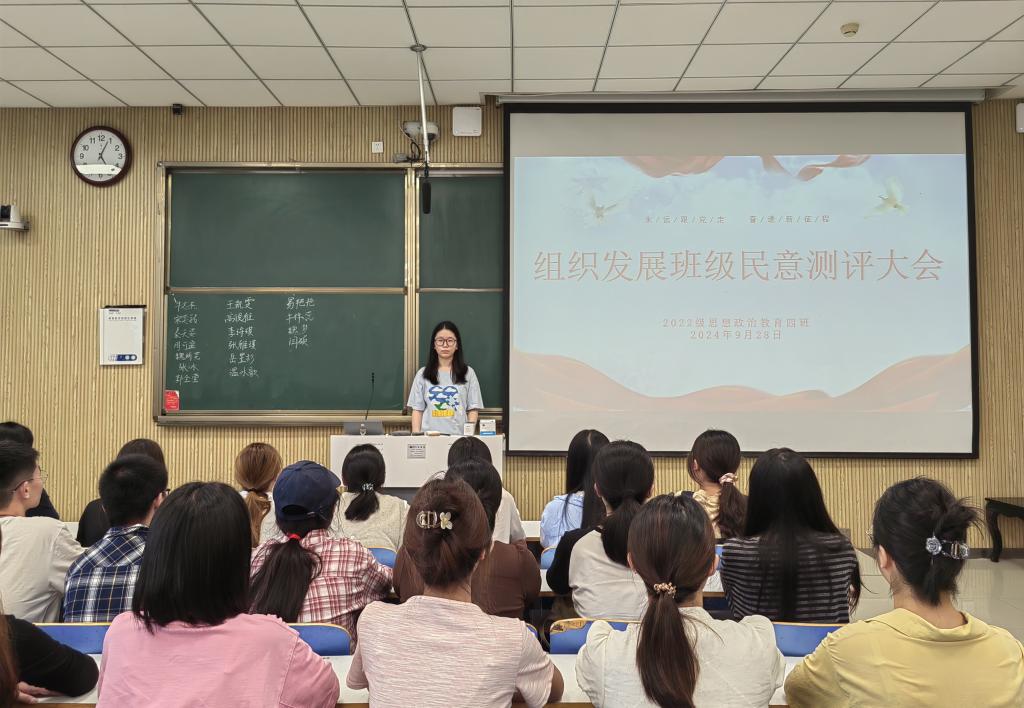 9月28日下午,德赢AC米兰官网2022级思想政治教育四班在社科楼515教室组织召开“组织发展班级民意测评大会”。德赢官网2022级思想政治教育四班全体成员参与本次大会。本次大会由团支书牛志杰主持。
