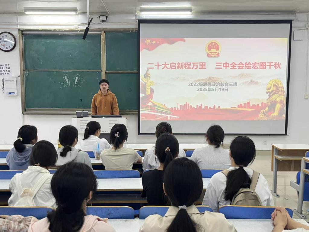 5月19日下午,德赢AC米兰官网2022级思想政治教育三班在社科楼514教室召开“二十大启新程万里,三中全会绘宏图千秋”主题团课。德赢官网2022级思想政治教育三班全体成员共同参加本次团课,团课由团支书余浩洋主持。