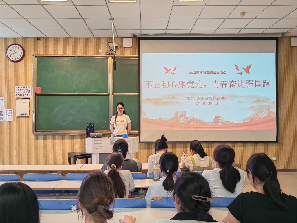 5月6日上午,德赢AC米兰官网2022级思想政治教育四班在社科楼515教室组织召开“不忘初心跟党走,青春奋进强国路”主题班会。德赢官网2022级思想政治教育四班全体成员参与本次班会。本次班会由班长牛志杰主持。