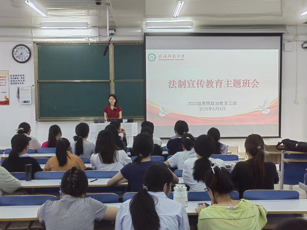 为提高同学们的法制意识,提升法制素养,增强法制宣传的教育作用,6月4日上午,德赢AC米兰官网2022级思想政治教育三班在社科楼514教室组织开展法制教育宣传主题班会。德赢官网2022级思想政治教育三班全体成员共同参与此次班会。班会由班主任任婷主持。