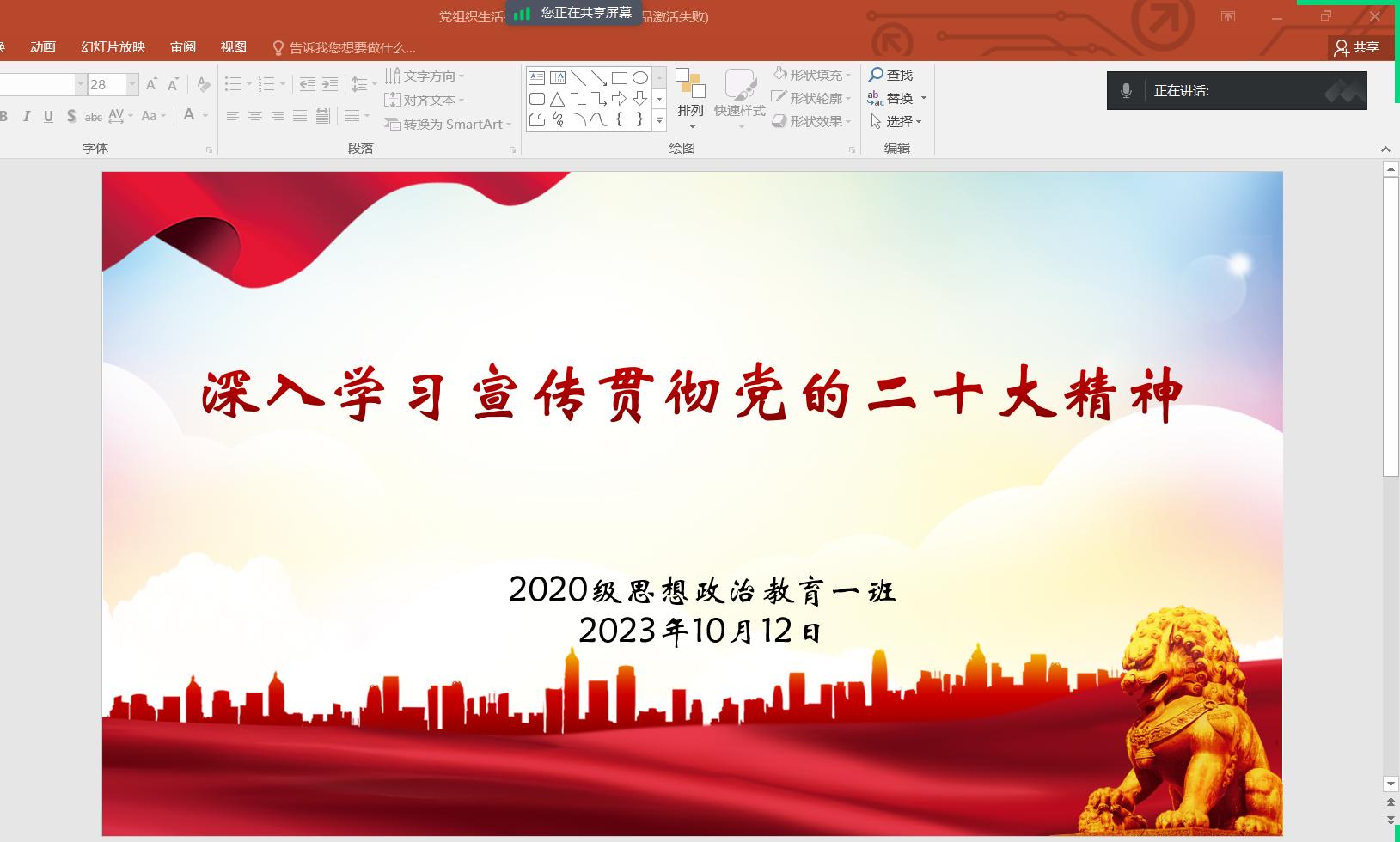 10月12日下午,德赢AC米兰官网2020级思想政治教育一班在社科楼教室开展“深入学习宣传贯彻党的二十大精神”团支部大会,会议由班长白帅豪主持。