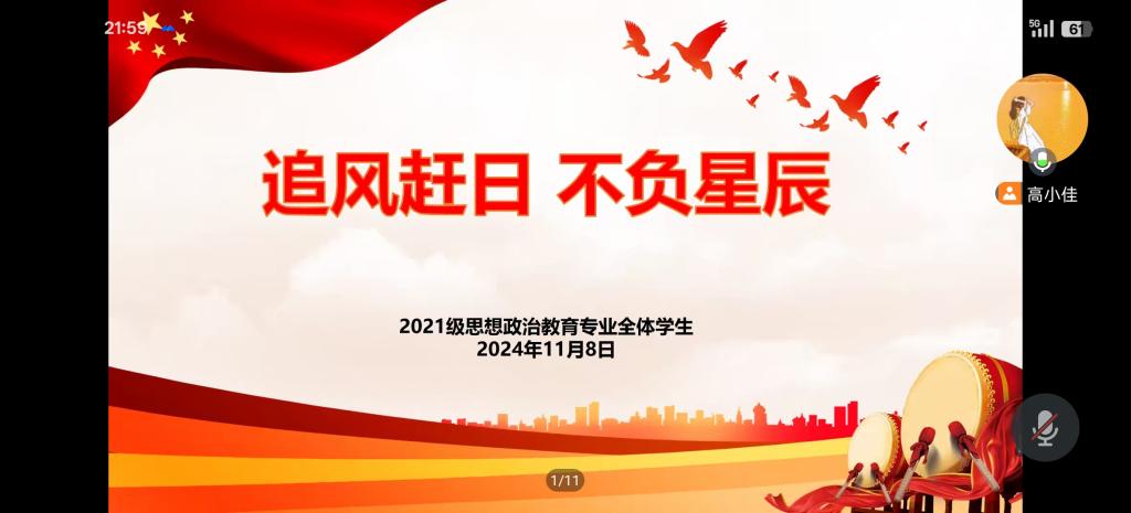 11月8日晚上,德赢AC米兰官网2021级思想政治教育专业全体成员在线上召开“追星赶月,不负星辰”主题班会。2021级思想政治教育专业全体成员和辅导员高小佳老师参加本次班会。会议由辅导员高小佳主持。